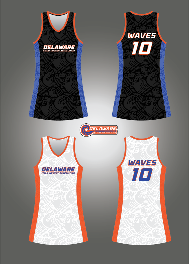 Delaware Waves Women’s competition full sublimation jersey design concept by Abby Phillips.Â